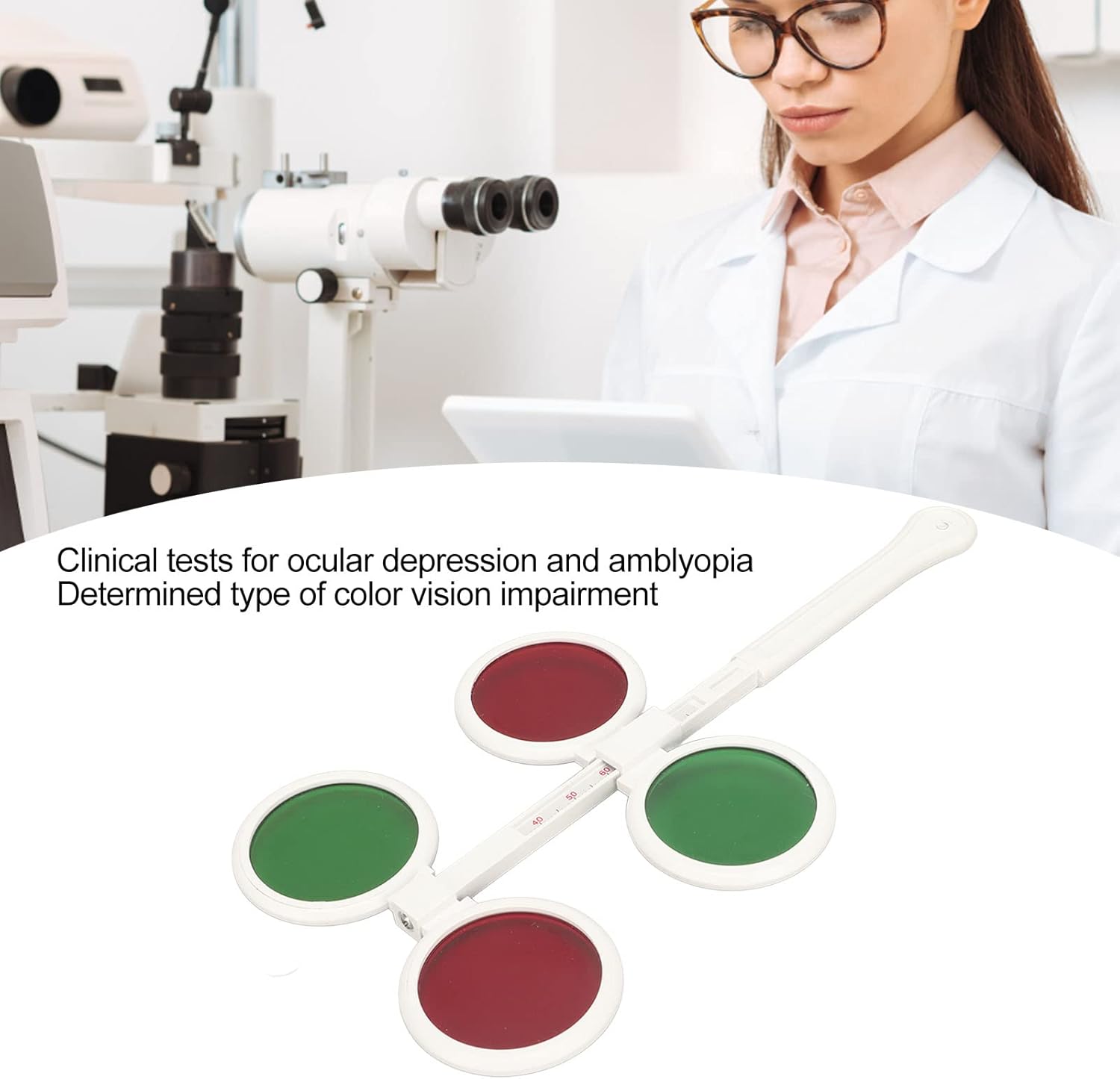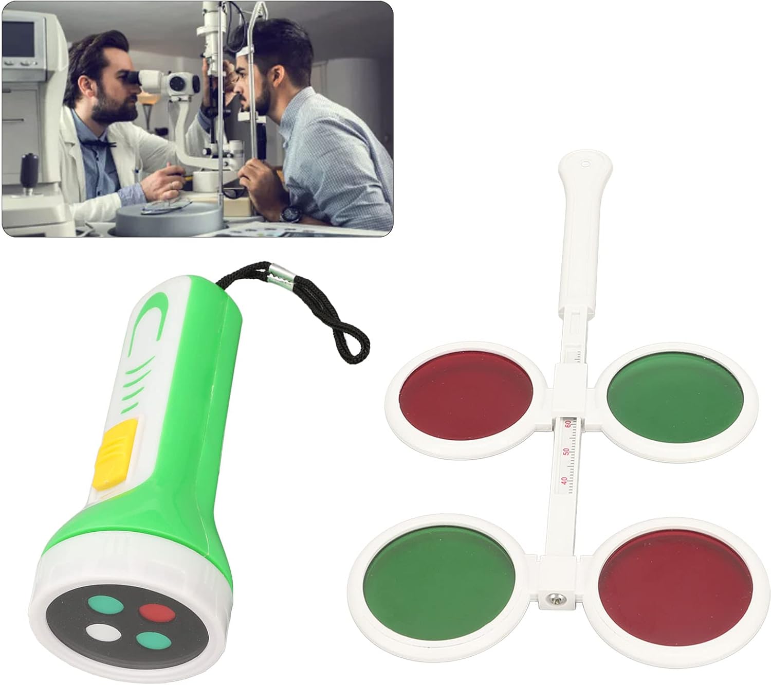Specification:Item Type: Worth 4 dot lightMaterial: ABSBattery: 2pcs AA battery(not included) Product Function: Wear red and green glasses to observe 4 dot light, and use the aura of complementary colors to separate the 2 eyes, so as to determine whether the 2 eyes have monocular inhibition and vision function under the condition of separation.Package List:1 x Red Green Flip Tool1 x Worth 4 Dot Light1 x Manual1 x Storage Box